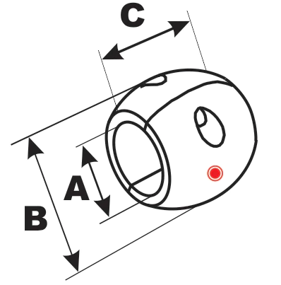 Ánodo de eje de aluminio con 2 mitades y herrajes de acero inoxidable.